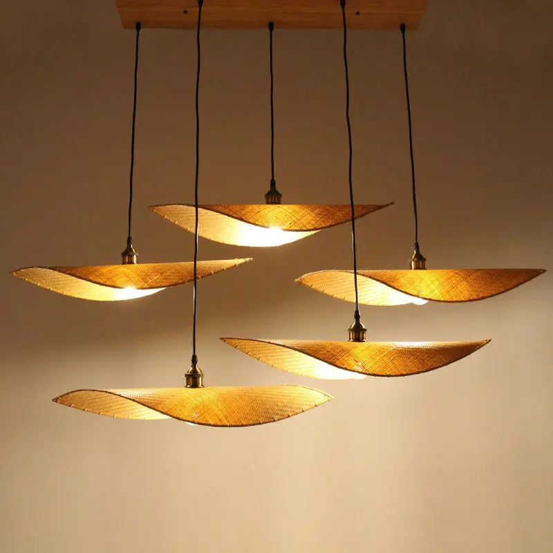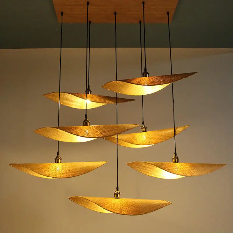 Zeal Lighting Bamboo Wicker Lampshade Led Pendant Lights Rattan Weave Art Chandelier Lamp Restaurant